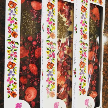Jelenlegi termékeim a táblás csokoládék töltött, feltéttel szórt vagy éppen egyedi feliratos verzióban, töltött bon-bonok, illetve az egyedi gyermek termékek a csokoládé nyalókák szezonálisan alkalmazkodva. Termékeim előállításakor 100% figyelem a minőségre mely a műhelyben a HACCP biztosít.